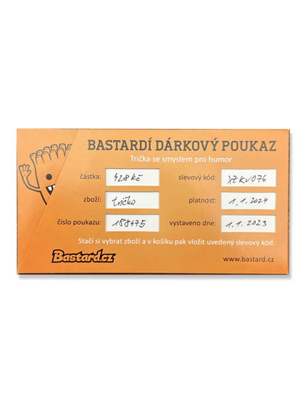 • Na poukazu bude kromě hodnoty vytištěn i slevový kod, který obdarovaný zadá při nákupu, a tak se mu odečte hodnota poukazu z celkové částky nákupu. Platnost poukazu je 6 měsíců.