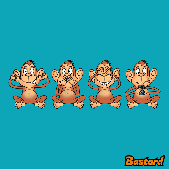 Klasická trojice moudrých opic – neslyším, nemluvím, nevidím – dostala moderní upgrade. Přidává se čtvrtá opička, která místo moudrosti radši čumí do mobilu. Protože takhle to dneska vypadá: realita offline je nuda, hlavně že notifikace jedou! Ideální potisk pro všechny, kdo si dělají srandu z moderních „moudrostí“ a neumí odložit telefon ani na chvilku.